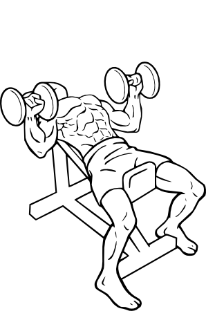 Setze dich auf die Bank, die Füße sind fest auf dem Boden und geben Halt, der Kopf liegt auf der Bank. Nehme die Hanteln in die Hand und drücke sie nach oben. Bringe die Hanteln nach unten, bis sie neben der Brust sind. Drücke das Gewicht wieder nach oben.