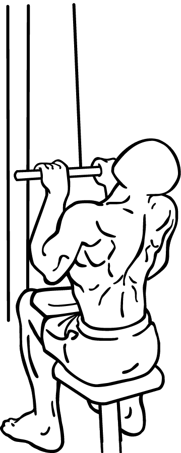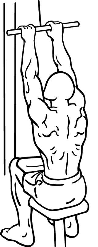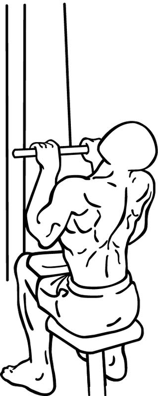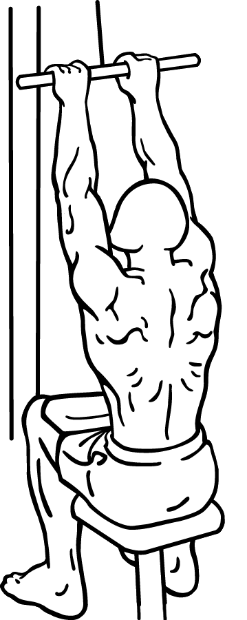 Stange soweit zurück, dass Ellenbogen leicht gebeugt