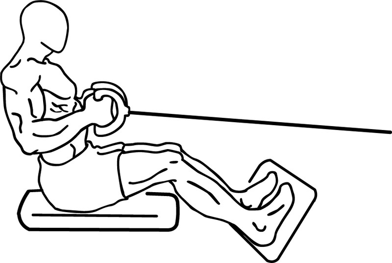 Sit down, put your feet on the supporting points and grab the bar with a wide grip. Pull the weight with a rapid movement towards your belly button, not upper. Keep your arms and elbows during the movement close to your body. Your shoulders are pulled together. Let the weight slowly down till your arms are completely stretched.